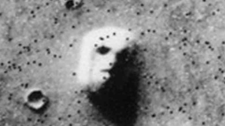 Космический аппарат NASA сфотографировал нечто похожее на человеческое лицо, проявившееся на грунте Марса. Снимки с Viking облетели весь мир, а желтые таблоиды не преминули в очередной раз заявить о внеземных цивилизациях. По факту, изображение является всего лишь оптической иллюзией. Люди часто видят фигуры в облаках, лица на Луне: парейдолией называется способность мозга создать порядок из хаоса.