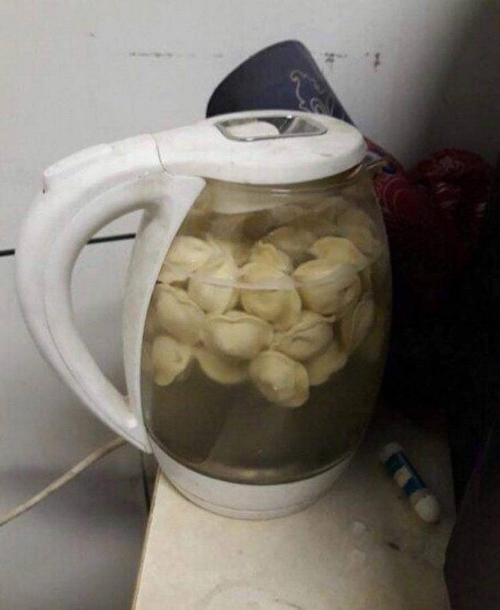 Пельмени в чайнике и я варю… Очень удобно ..!