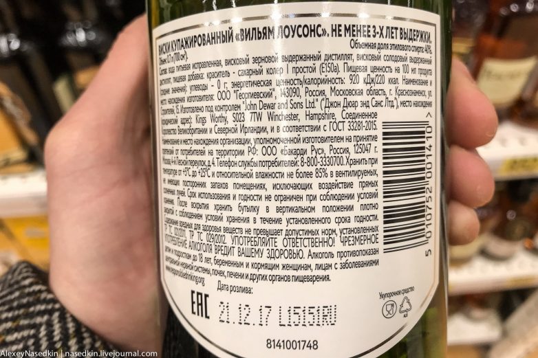 16. От увиденного хочется выпить. Что же нам предлагается из крепких напитков? Возьмём виски, ну пусть не самого высокого ценового сегмента. Но вроде же написано «виски». И бренды узнаваемы.