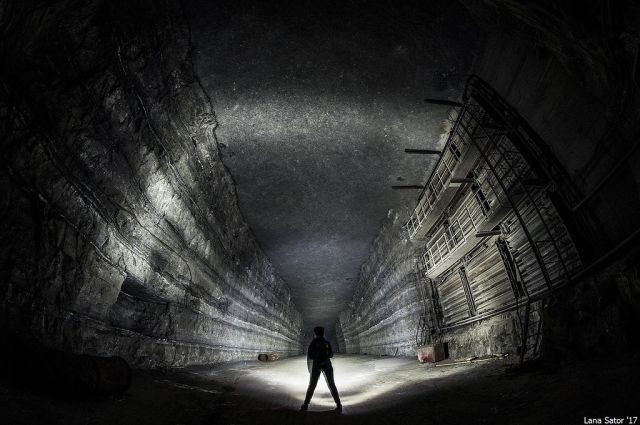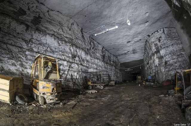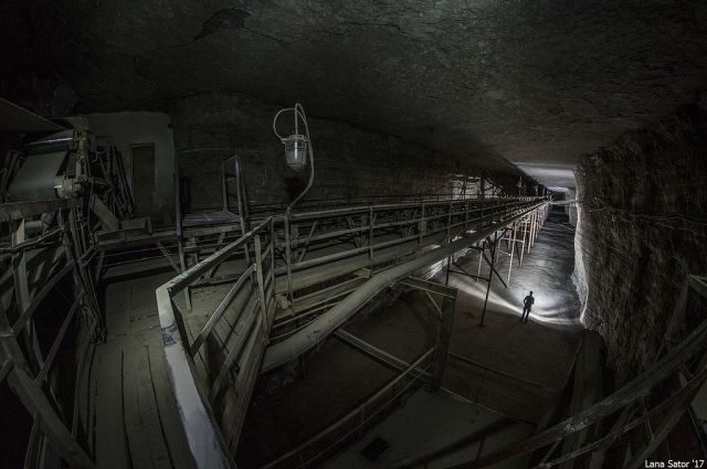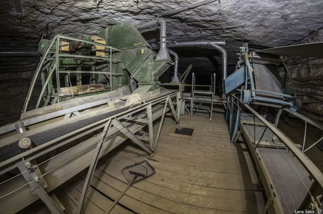 Однако, основные объёмы хранения представляют собой штреки длиной в несколько сотен метров, высотой более 10 и шириной около 8 метров. По потолку некоторых протянут всё тот же конвейер