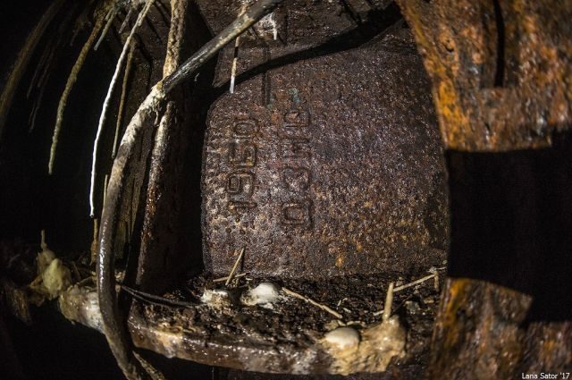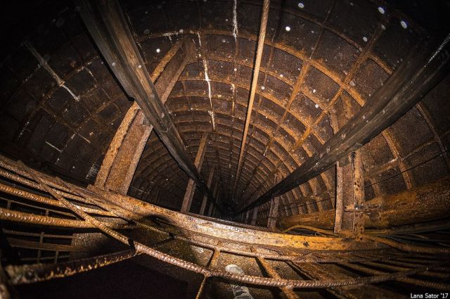 Ствол из чугунных тюбингов, на некоторых из которых видны отпечатки года их выпуска… И года строительства этого странного места