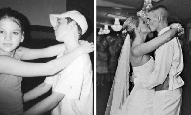 Танец на первой школьной дискотеке, и она явно не рада такому партнеру. Но спустя годы они уже танцуют на собственной свадьбе. И очень счастливы!