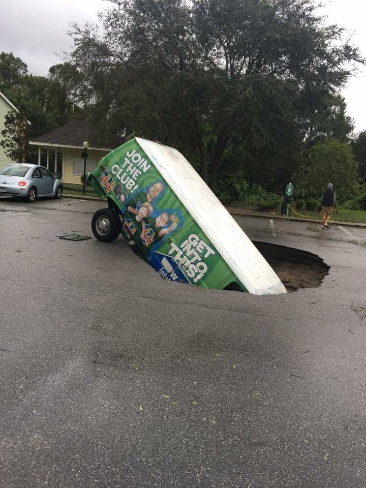«Вступай в клуб!» Надпись на фургоне в яме. Мужик лифчик с майкой перепутал?