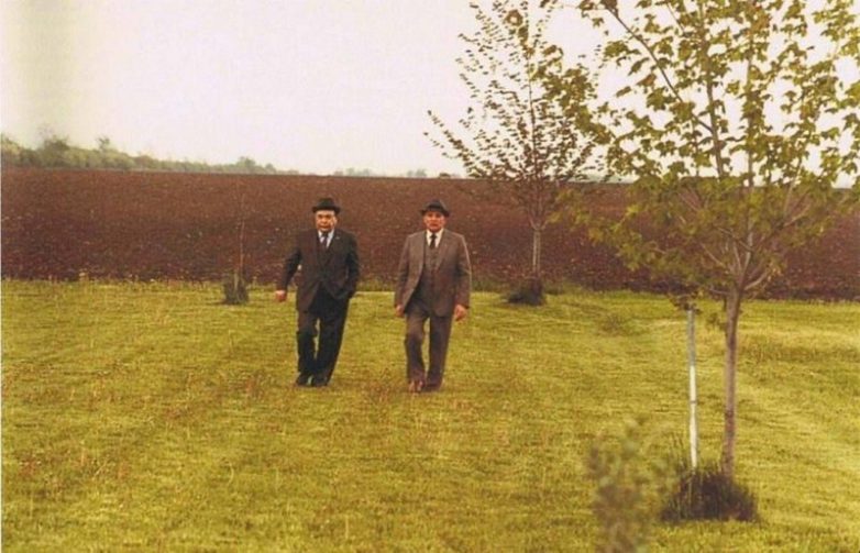 Александр Яковлев и Михаил Горбачев во время визита на одну канадскую ферму, 1983 год.