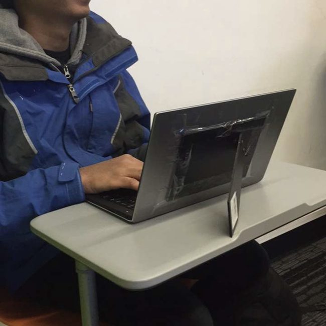 «Использую рамку от фото, потому что сломался механизм, поддерживающий крышку ноутбука»