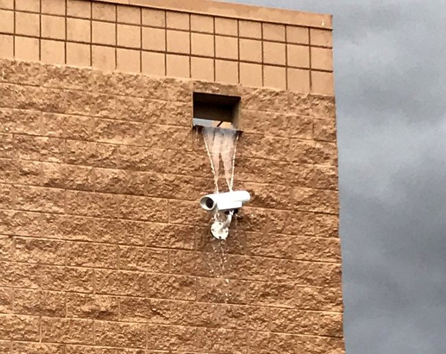Камера видеонаблюдения закреплена прямо под водостоком.