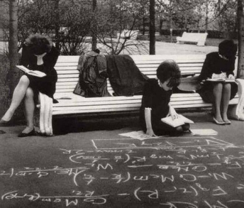 Советские студентки готовятся к экзамену в парке, конец 1960-х гг.