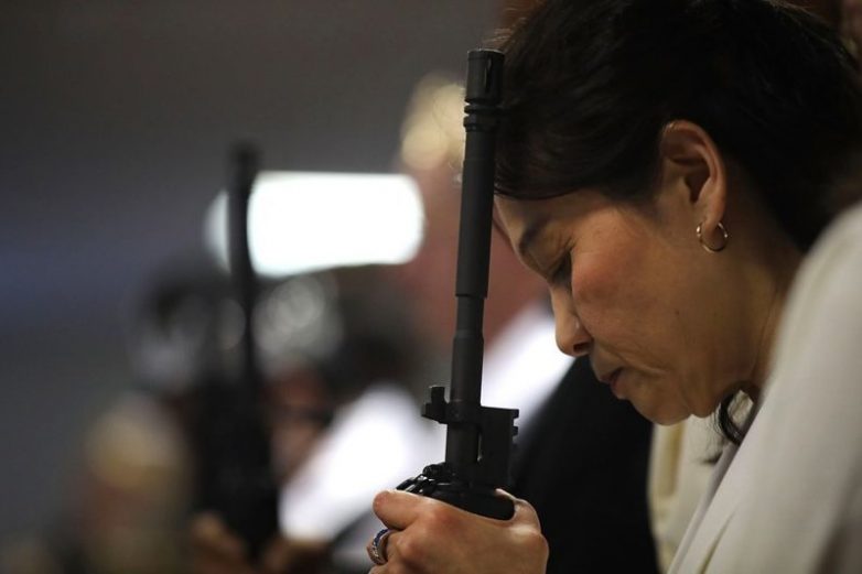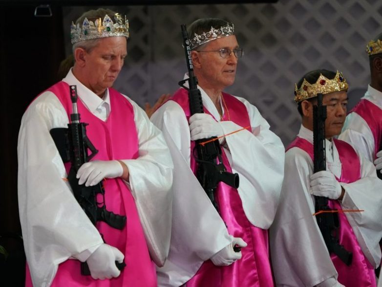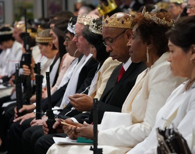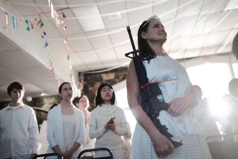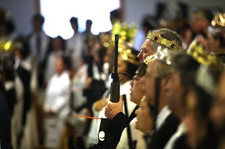 28 февраля в американском городе Ньюфаундленд (штат Пенсильвания) прошло необычное богослужение. Члены Церкви объединения и всеобщего мира провели «церемонию благословения» с оружием в руках и в коронах из патронов.