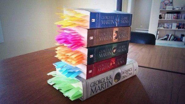 Каждая смерть в серии книг «Игра престолов» выделена закладкой.