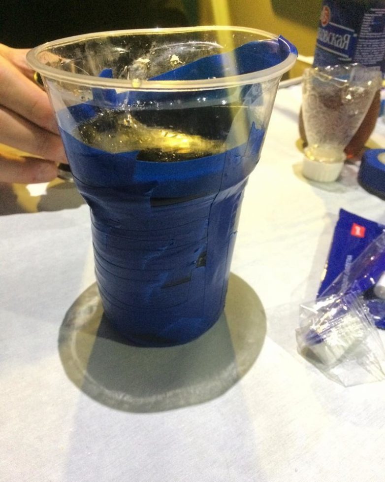 Протекает пластиковый стакан? Синяя изолента спешит на помощь!