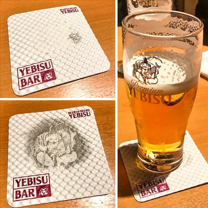 На этой подставке под пиво проявляется рисунок, как только она соберет достаточно влаги