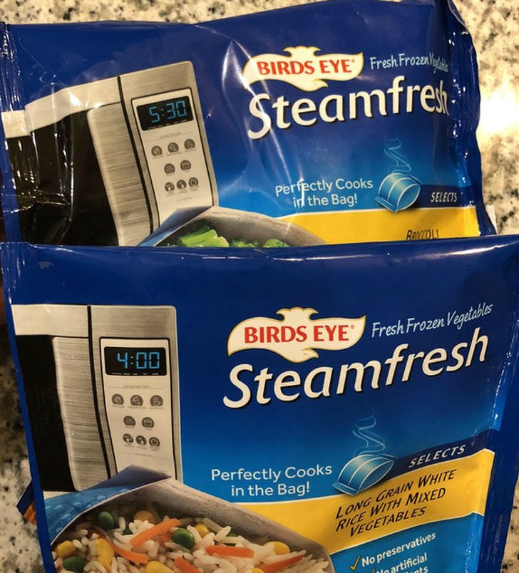 Микроволновая печь на упаковке показывает, сколько нужно готовить это блюдо