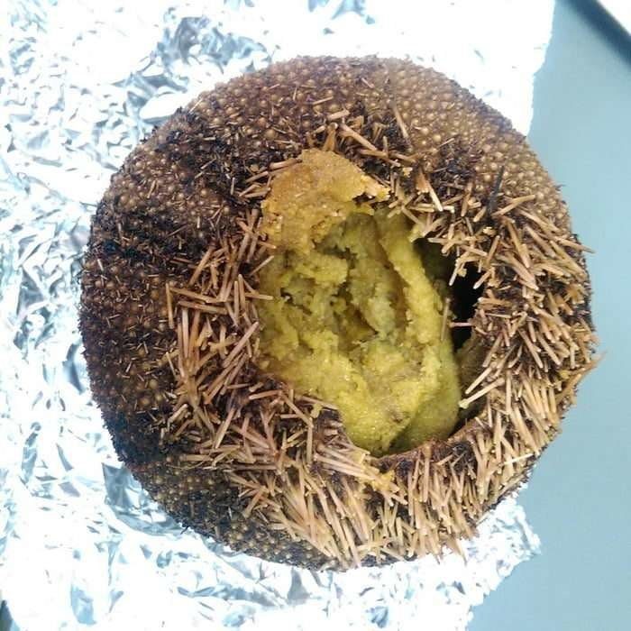 Икра морского ежа. Ее можно пожарить, сварить, а также съесть в сыром виде с лимонным соком.