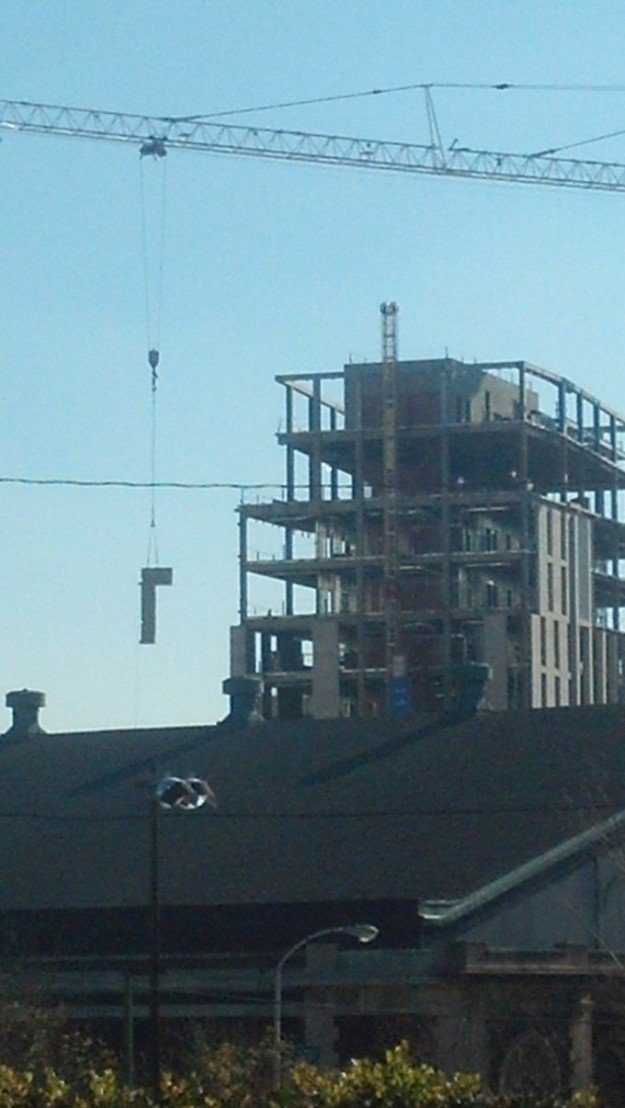 На стройке бетонная плита срывается со строп крана, обрушивает перекрытие, сносит несущую балку после чего 9-ти этажное здание