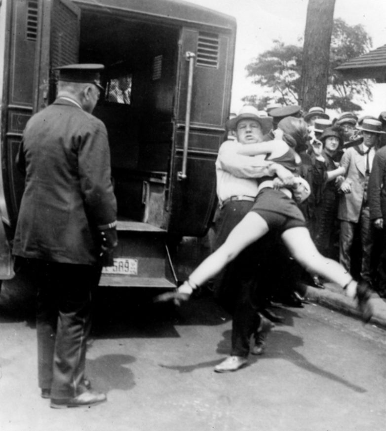 Арест в Чикаго. Обвинение: ношение запрещенного купальника и обнажение женских ног в публичном месте, 1922