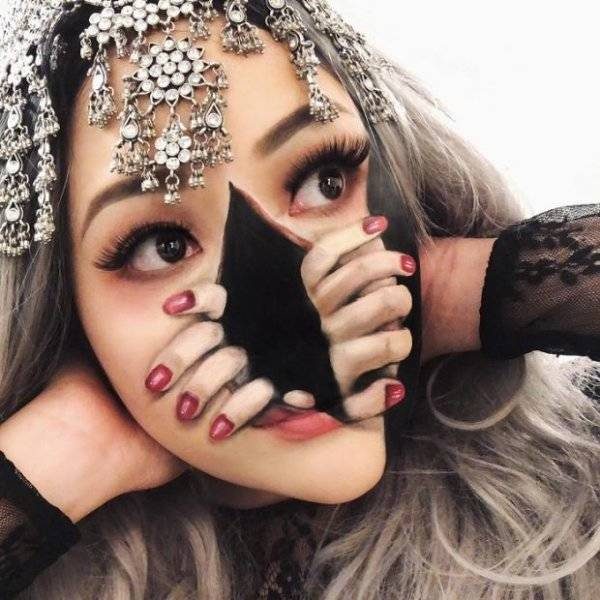 Смотрел ролик с такими девушками, как на первом фото. Им делают профессиональный грим. Зачётно. Очень понравилось.