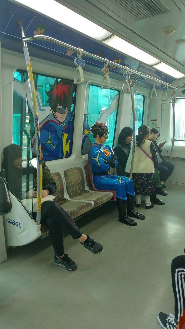 Очень много тематических вагонов метро и электричек. Этот посвящен какому-то местному персонажу мультфильмов. Станции объявляются голосами героев мультика, а их фигуры рассажены по вагонам.