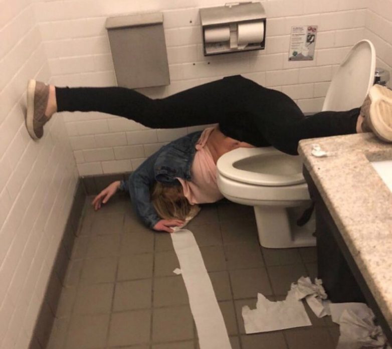 Как же надо напиться, чтоб так заснуть за унитазом ...!?
