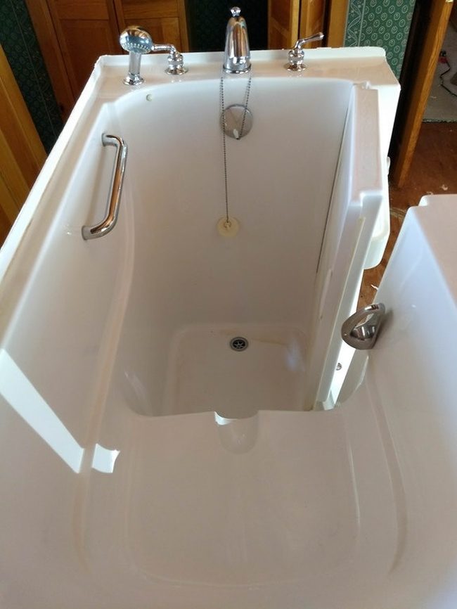 Это ванна для инвалидов, которые не могут перешагнуть через бортик, дверца герметично закрывается, очень удобная штука, но не дай Бог открыть дверцу пока не стекла вода…
