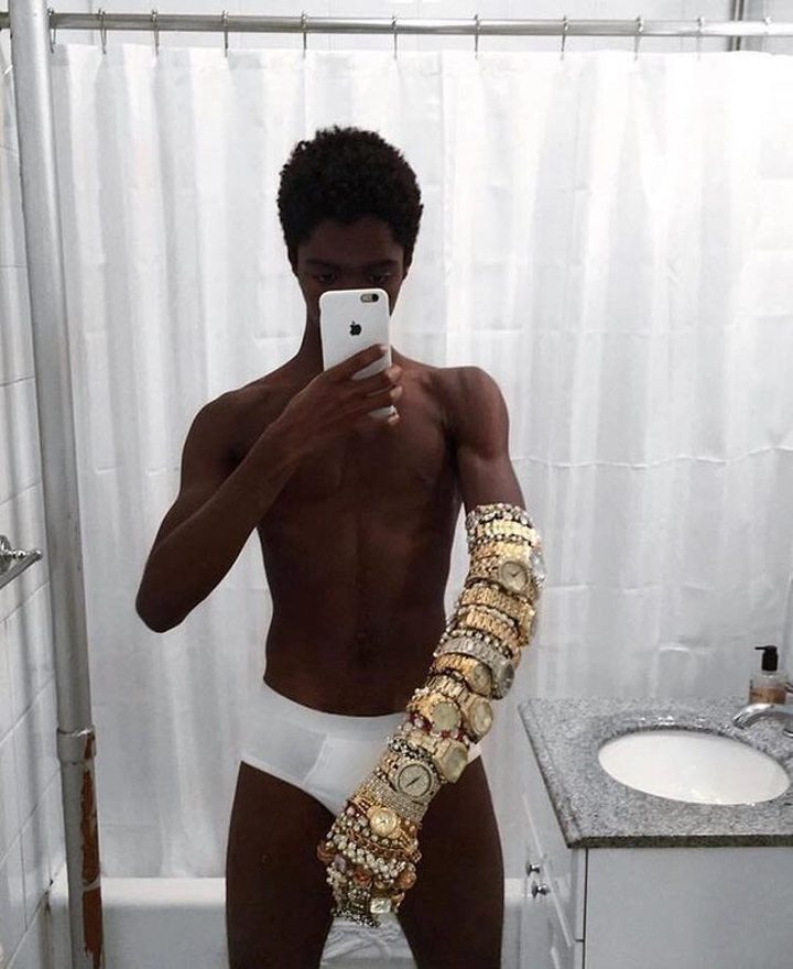 Парень не смог выбрать, какие часы лучше подойдут к его нижнему белью, поэтому надел все