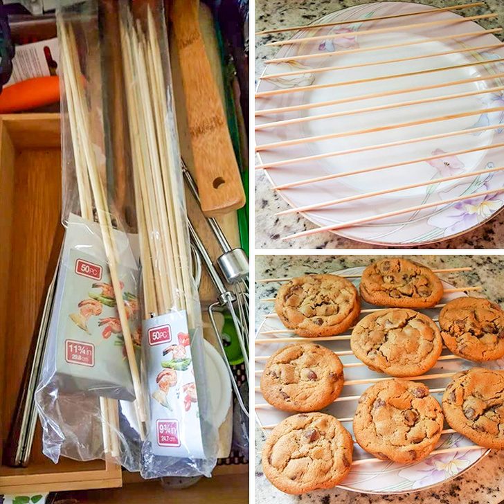Если у вас нет решетки для печенья, выручат деревянные шпажки