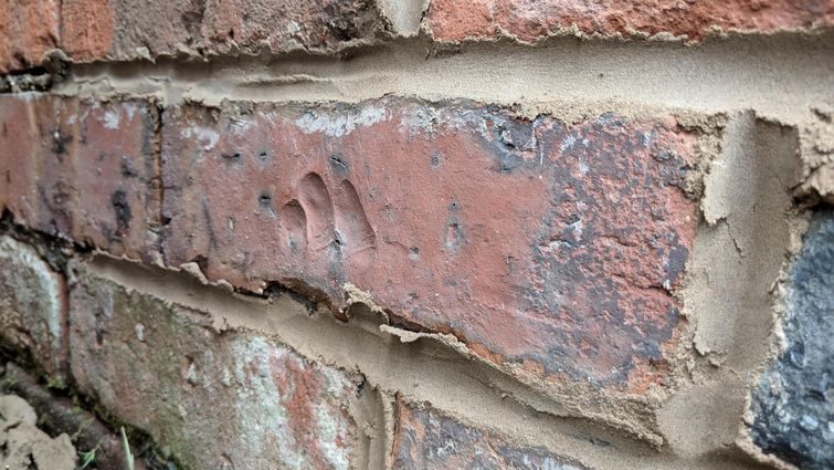 Этому кирпичу более 100 лет, но он по-прежнему хранит на себе отпечаток руки своего создателя