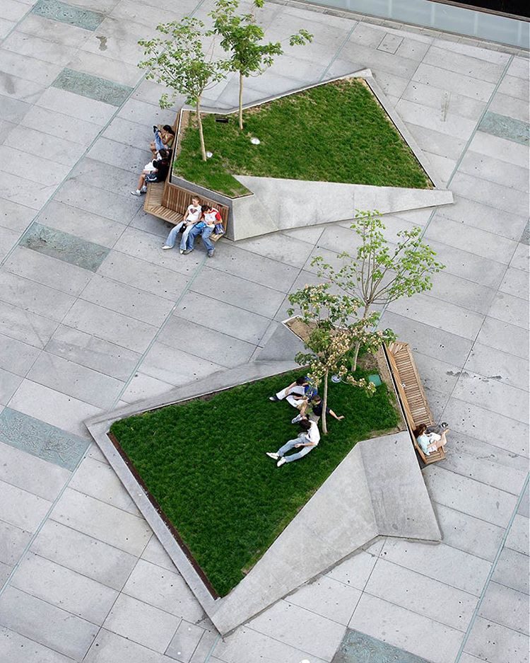 Лавочка и лужайка, на траве которой можно отдохнуть