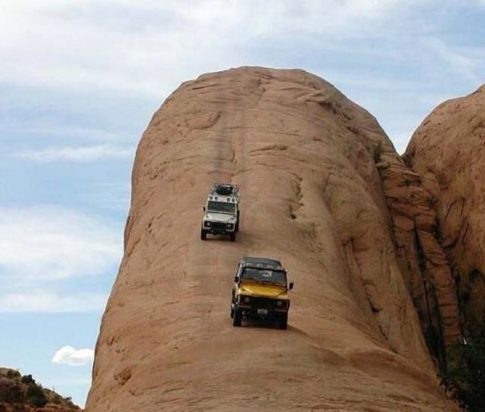 Интересно, однако, как джипы забрались на гору, с которой спускаются на снимке…… Но тут не всё так уж ужасно… А я, в силу своей испорченности, сразу как прочитал название, вспомнил фрагмент из песни В.Высоцкого, где есть слова:"… тута Пашка приходил, кум твой окаянный… еле-еле не далась, щщас аж вся дрожу!" Ну, это я так просто вспомнил… словосочетание похожее…