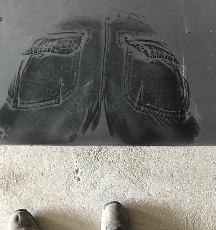 «Ничего не подозревая, сел на лавочку. Оказалось, что она в толстом слое пыли»