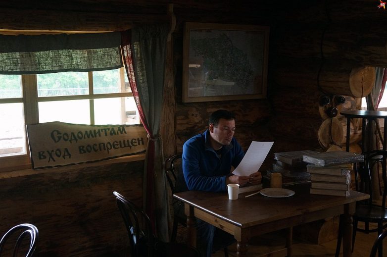 В слободе вышли возле избы-магазинчика. Хлебосольный хозяин Герман Стерлигов встречает у порога. Лицо самого сурового крестьянина Русиправославной растянулись от улыбки – Герман ест мороженое.