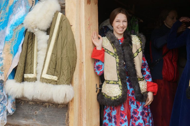 Я огляделся. В удивительной избушке-бутике в глазах рябит от женских штучек: пестрые платья, обшитые камнями от Сваровски, шелковые платки и… уникальные ватники с пуговицами из фарфора, обшитые норкой.