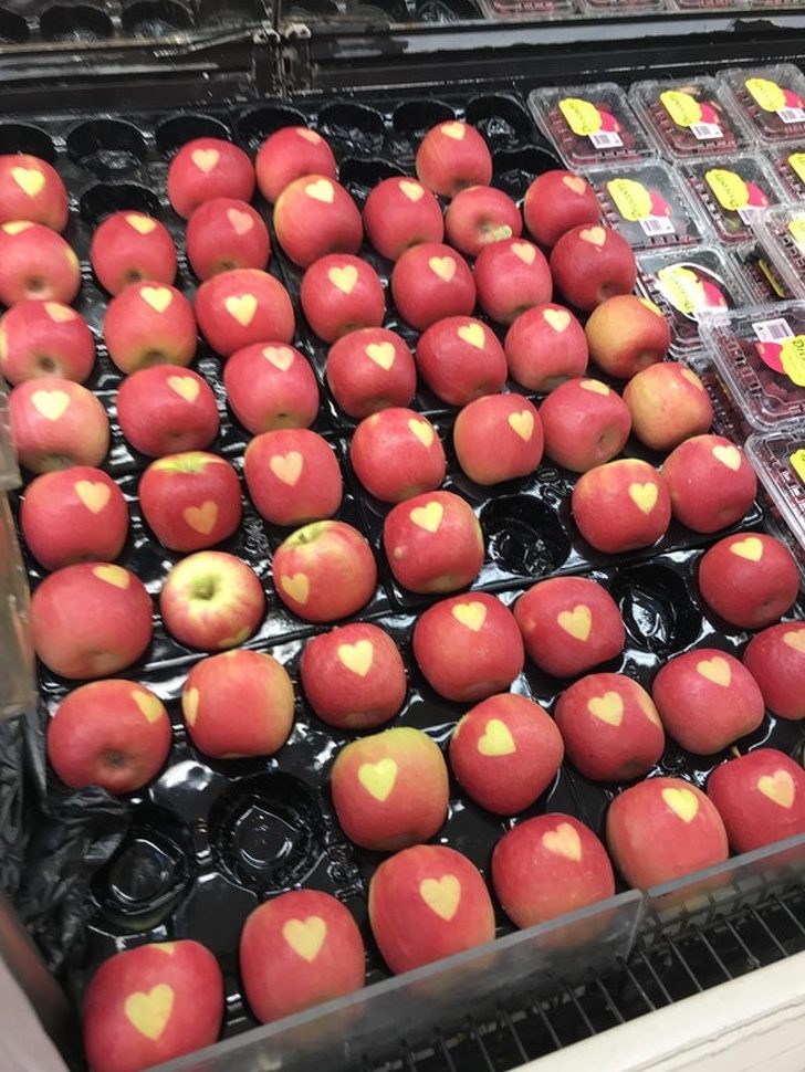На яблоки в период созревания наклеили наклейки, и вот что в итоге получилось