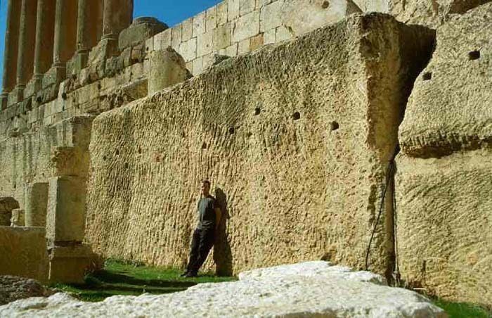 Наиболее интересными сооружениями в Баальбеке считаются огромные террасы. Они выложены из громадных каменных блоков весом от 300 до 1000 тонн (к примеру, средний вес каменных блоков в пирамиде Хеопса 2,5 тонны), причем уложены они без какого-либо связывающего состава и настолько точно и аккуратно, что просунуть даже иголку между ними весьма проблематично.