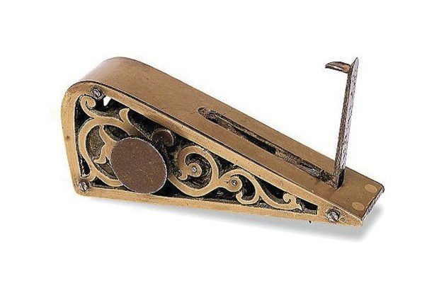 Специальное приспособление, которое помогало бороться с ворами. Штырем, который торчал сверху, подпирали дверь. Если дверь открывали снаружи, штырь падал на звонок, предупреждая хозяев о незваных гостях.