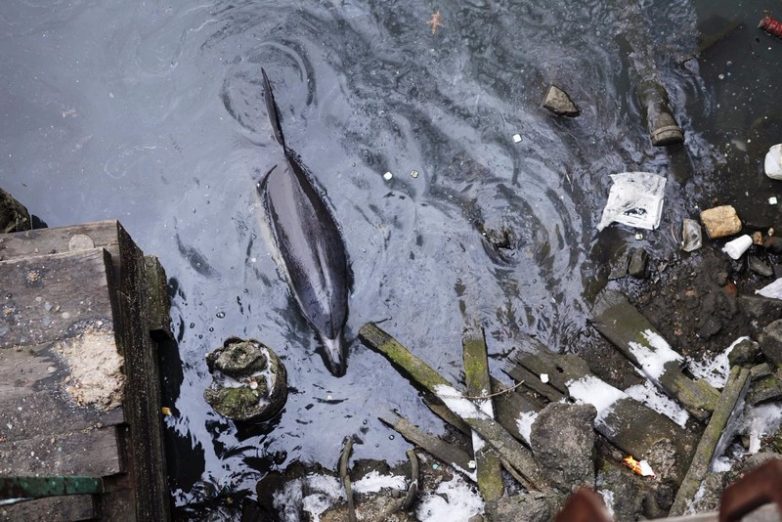Дельфин погибает в куче мусора в канале Гованус, Нью-Йорк