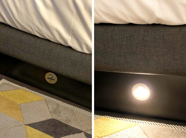 Кровать, в которую вмонтирована лампочка с датчиком движения: теперь вы ни на что не наступите в темноте