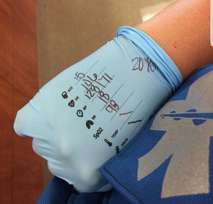 Перчатки, на которых сотрудник скорой помощи может записать все показатели для врачей
