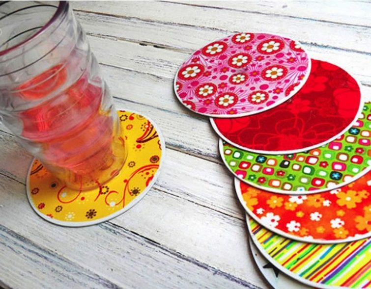 С помощью несложного яркого декора, пришедшие в негодность компакт-диски можно превратить в очаровательные подставки под чашки.
