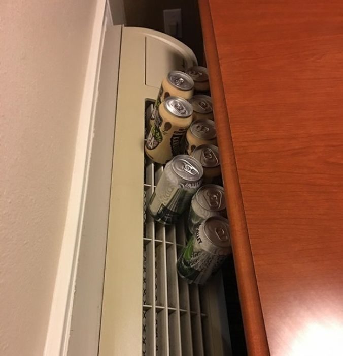 Если в номере отеля нет холодильника, то охладить напитки можно с помощью кондиционера.
