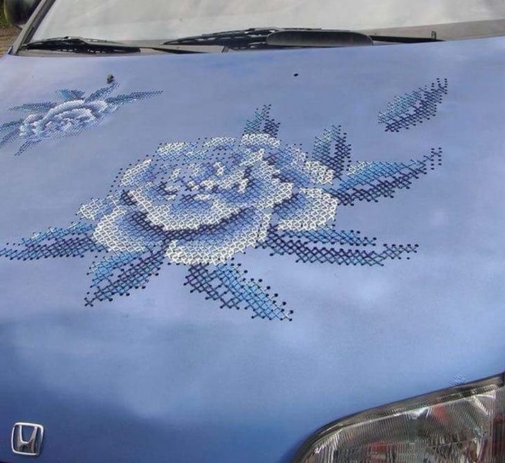 Красивая вышивка. Но лучше бы на салфетке, чем на машине