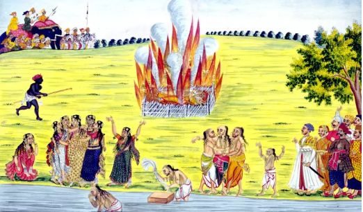 В Индии когда-то существовал обряд, в ходе которого жены умерших мужей (предположительно добровольно) давали сжечь себя на погребальном костре мужа.