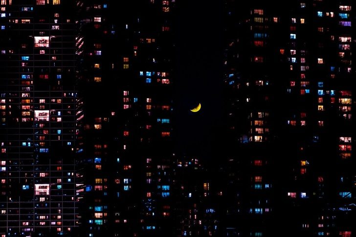 Луна между небоскребами