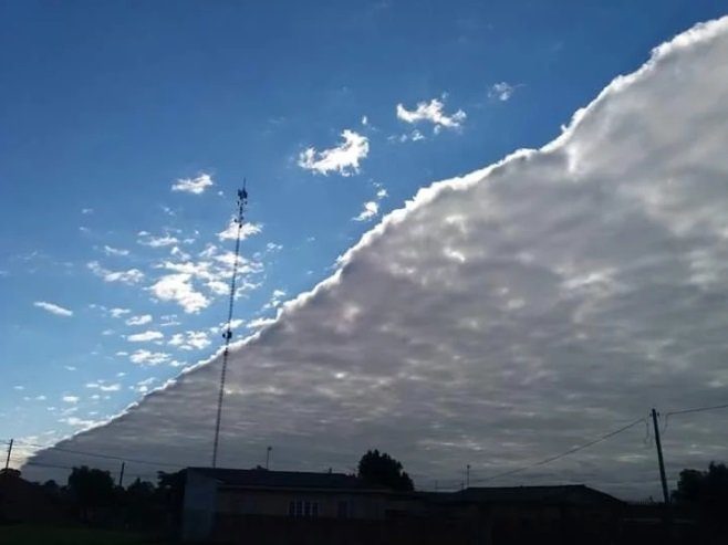 Смотрите, теперь это правильный штормовой фронт. На самом деле, это слишком прекрасно. Выглядит так, будто небо прикрывает солнце одеялом после тяжелой ночи.