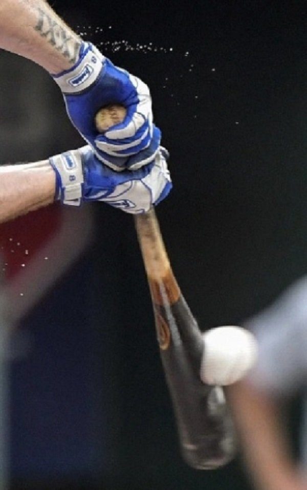 Этот сделанный в нужное время снимок запечатлел момент, когда бейсбольная бита ударяет по мячу. Уже давно говорят, что самая сложная часть бейсбола – это попасть закругленной битой по круглому мячу. Но, похоже, один из них уже не такой круглый.