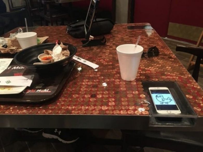 1. Столы в ресторане с «кармашком» для смартфонов.