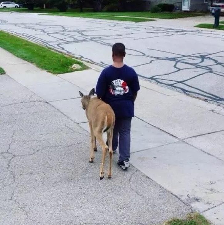 «Каждое утро школьник помогает слепому олененку, который живет в нашем районе, найти еду»