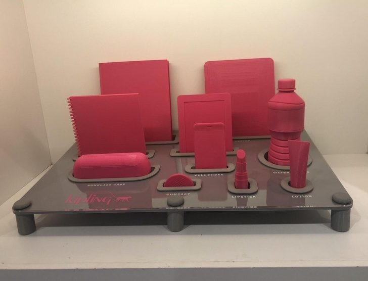 В магазине, который торгует сумками и рюкзаками, есть предметы, распечатанные на 3D-принтере, чтобы можно было прикинуть, войдут ли в новую сумку твои вещи