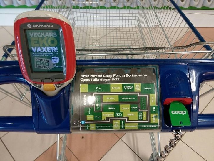 А к ручке этой тележки прикреплена карта магазина