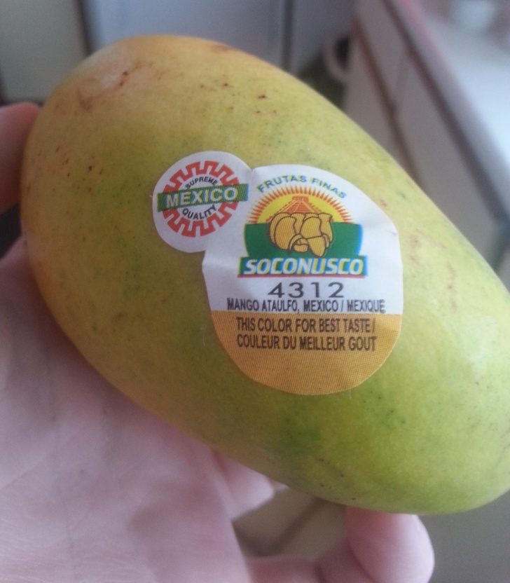Наклейка показывает, какого цвета должно быть манго, когда оно приобретет свой лучший вкус