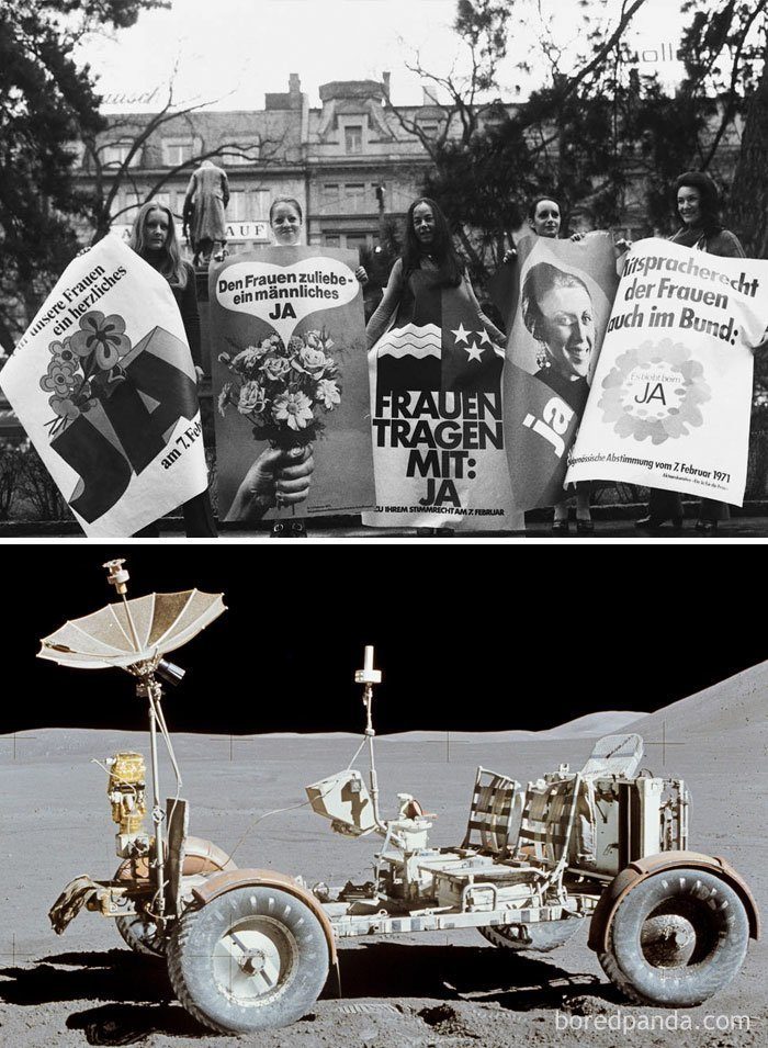 10. Женщины в Швейцарии получили право голосовать в тот же год, когда США испытали лунный вездеход (экспедиция «Аполлон-15», 1971 г.)